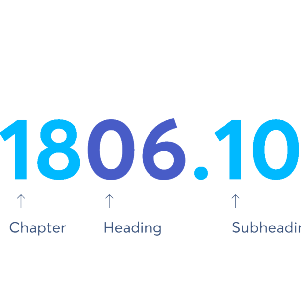 The first six digits of commodity code refer to HS codes (“Harmonized Commodity Description and Coding System”) used by all members of the World Customs Organization (WCO). As the image shows, HS codes can be broken down into three parts: the first two digits identify the Chapter the goods are classified in, the next two digits identify the Heading within that Chapter, and the last two digits identify the Subheading within that Chapter.